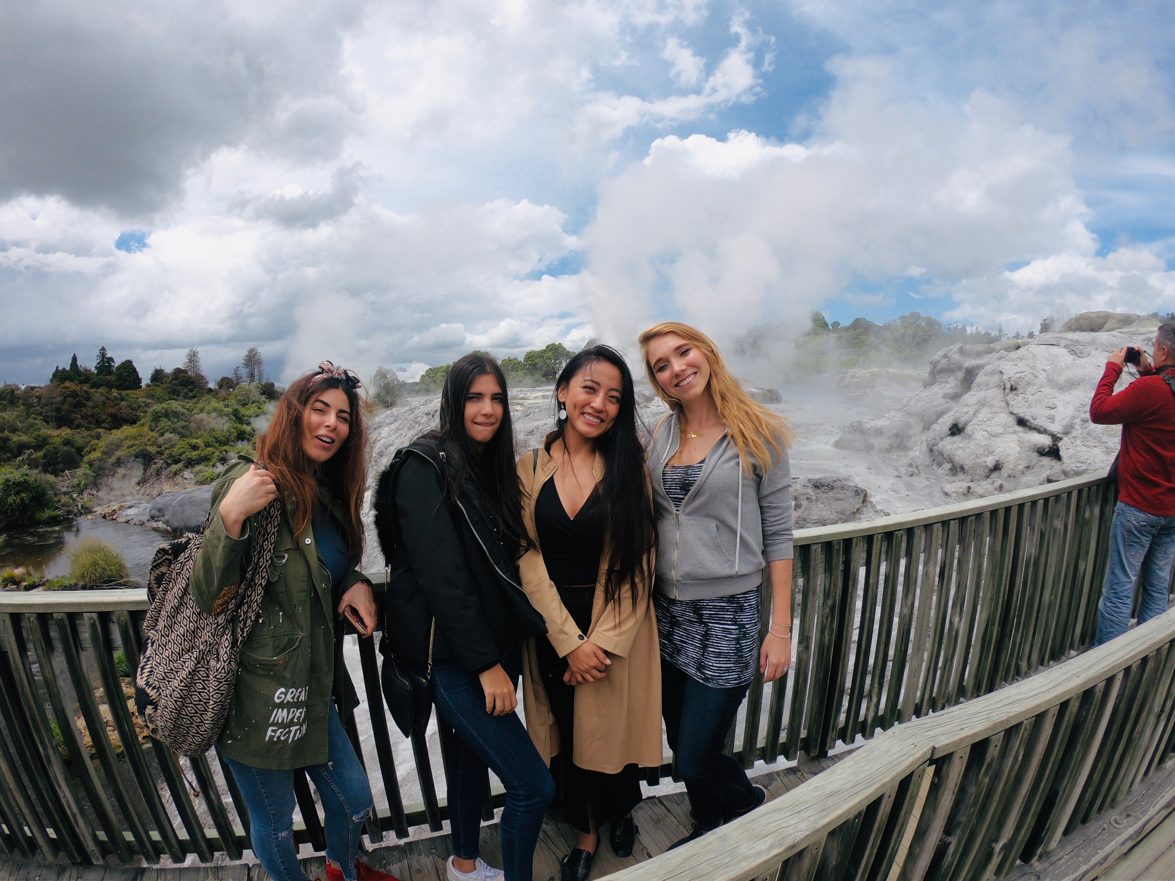 藏族空姐巴桑央珠(左三)与同伴在飞经新西兰期间参观旅游(资料照片)。新华社发