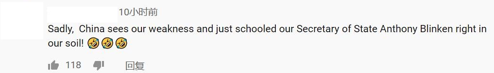 “很不幸,中国看到了我们的弱点,并在我们的地盘上教育了我们的国务卿布林肯......”