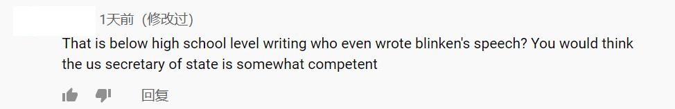 “写这个发言稿的怕是高中没毕业吧?布林肯能把稿子念成这样已经不错了。”