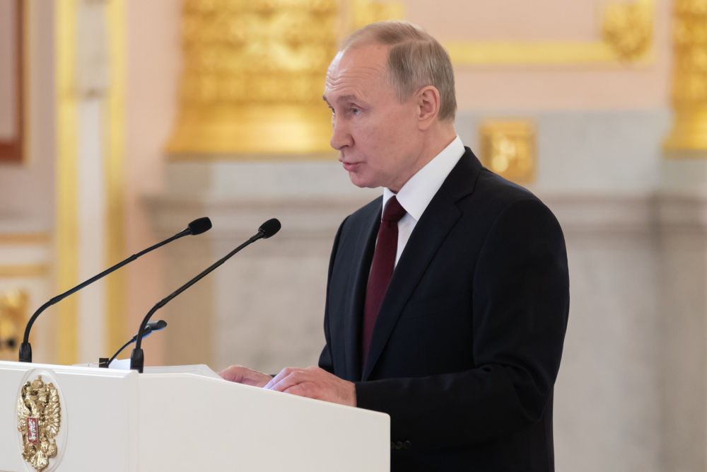 2020年2月5日,在俄罗斯首都莫斯科,俄总统普京在克里姆林宫接受23国新任驻俄大使递交国书。新华社记者白雪骐摄