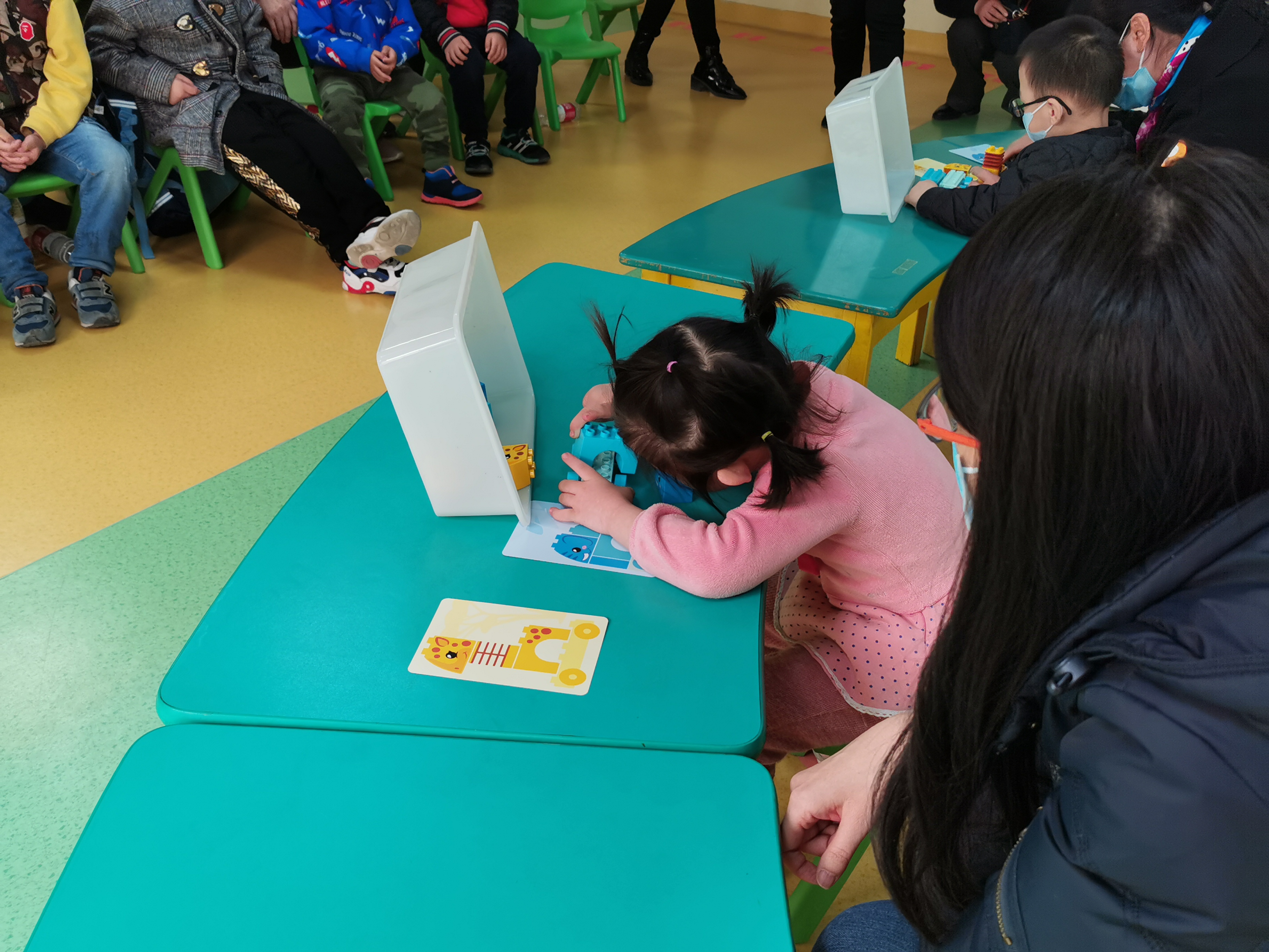 3月19日,唐氏综合征患儿欣欣(化名)在比赛中拼接积木模型。新华社记者 邰思聪 摄