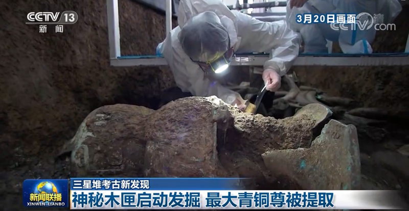 央视网消息(新闻联播):三星堆遗址考古器物层深度发掘工作正在进行,考古人员在6号坑发现了一个神秘木匣并已开始初步发掘。同时,此次考古发现的最大体量的青铜大口尊今天(3月21日)也被提取,关于象牙的古DNA研究也将同步展开。