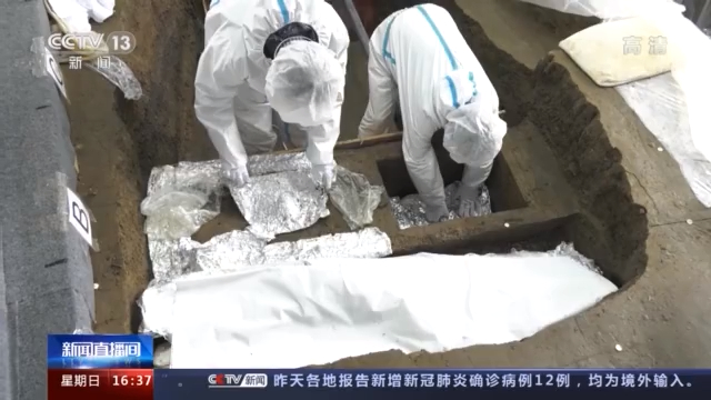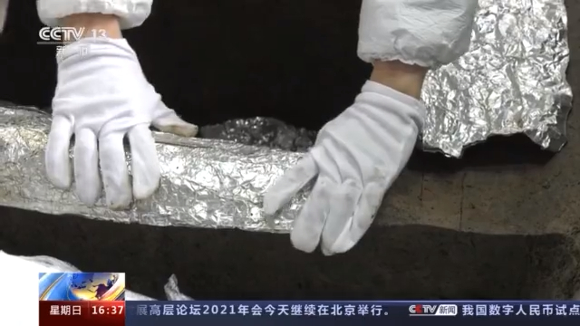 三星堆遗址考古发掘队队员 马永超:第一层首先是要在这个木板上盖一层锡箔纸,这个主要作用就是加固木板,不让它变形。在锡箔纸之上再盖一层塑料薄膜,然后在塑料薄膜之上,我们我们再盖一层毛毯,最上头,也就是我们说的第四层,在上面再盖一层薄膜。