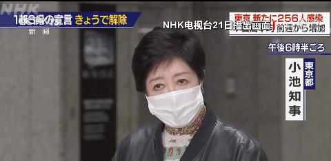 东京都知事小池百合子21日表示,尽管紧急状态已经解除,但她希望民众能意识到,眼下最重要的是防止疫情反弹,她希望东京都民众继续配合各项防疫措施,防止陷入新一拨疫情。