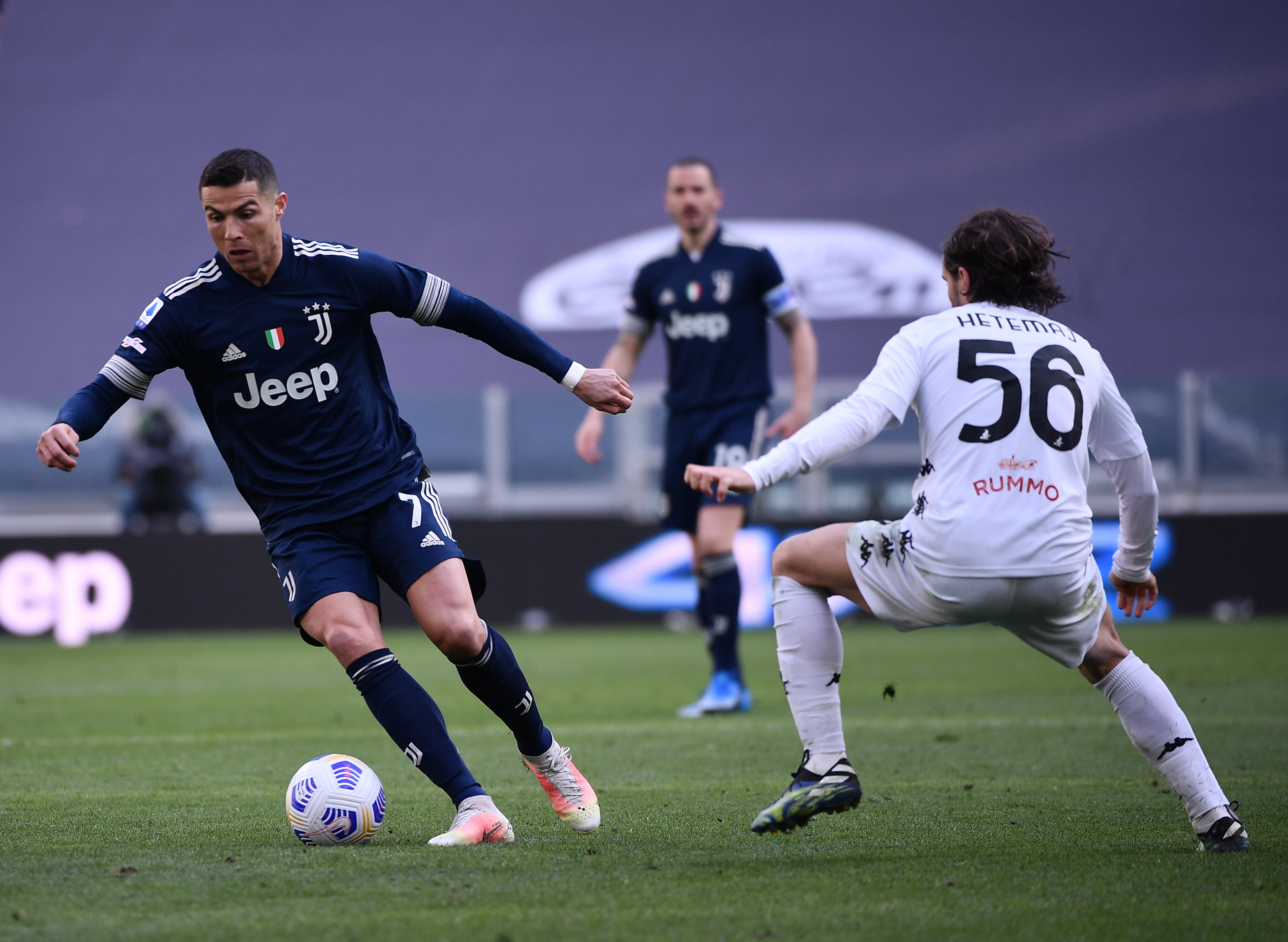 3月21日,尤文图斯队球员克·罗纳尔多(左)在比赛中进攻。新华社发(费代里科·塔尔迪托 摄)