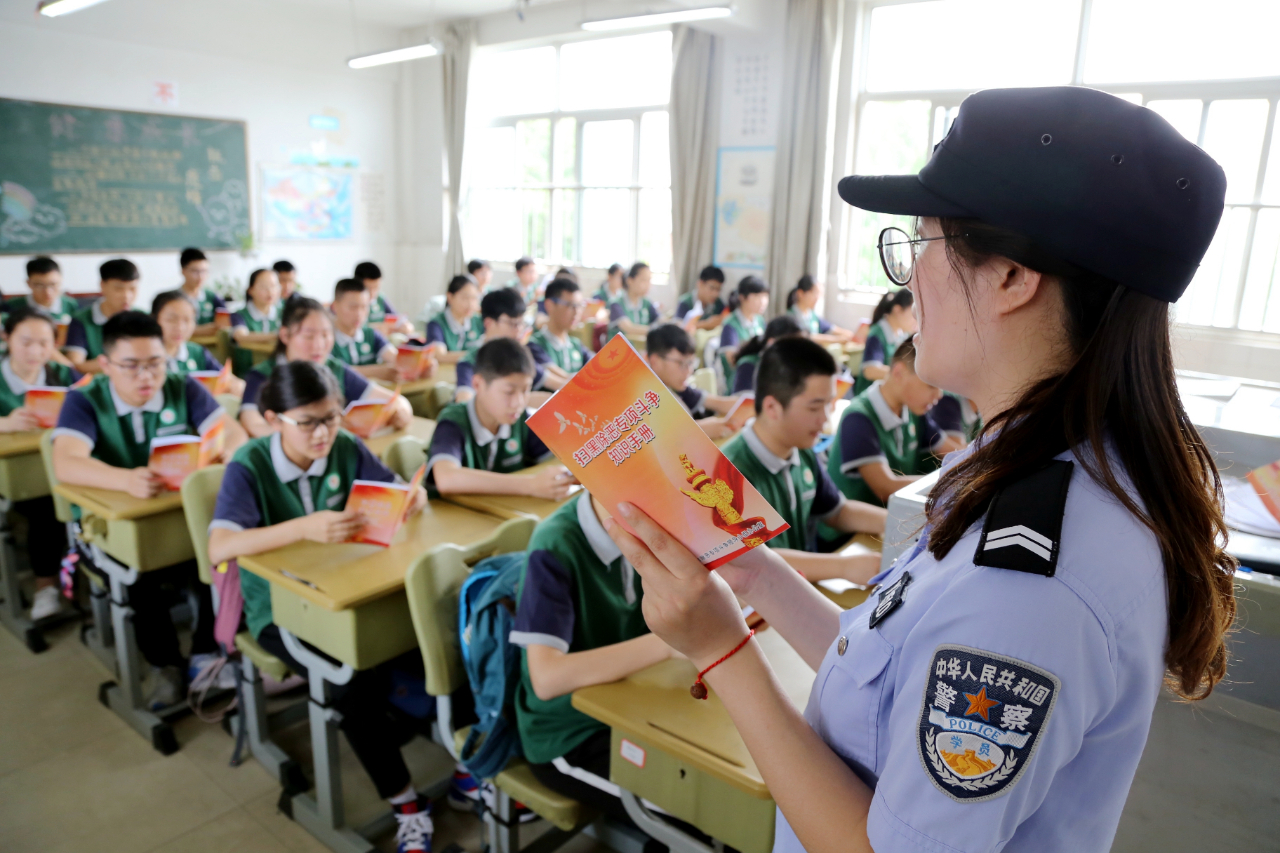 安徽合肥,民警为学生讲解预防校园欺凌等相关知识