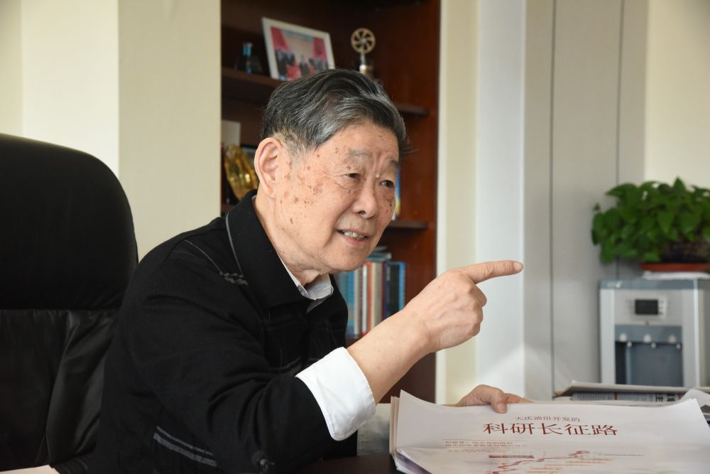 大庆“新铁人”王启民在办公室里回忆大庆油田的“科研长征路”。(新华社记者杨喆2021年2月25日摄)