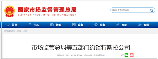 2月8日晚间,国家市场监督管理总局发布消息,表示与中央网信办、工业和信息化部、交通运输部以及应急管理部消防救援局,就消费者反映的异常加速、电池起火、车辆远程升级(OTA)等问题共同约谈了特斯拉,要求其严格遵守中国法律法规,加强内部管理,落实企业质量安全主体责任,有效维护社会公共安全,切实保护消费者合法权益。