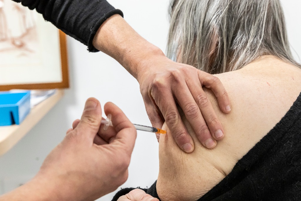 3月19日,在法国北部城市图尔宽,药剂师为一名女子接种阿斯利康新冠疫苗。新华社发