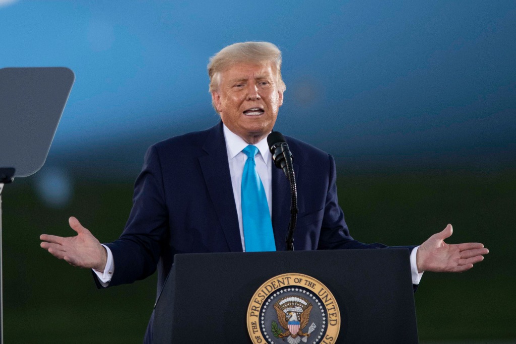 2020年9月3日,时任美国总统特朗普在宾夕法尼亚州拉特罗布参加竞选集会。(新华社记者刘杰摄)