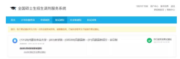 提交调剂志愿后,请及时登录调剂系统查看,如接到复试通知,应在招生单位规定时间内通过调剂系统确认回复,并按招生单位要求办理相关手续。