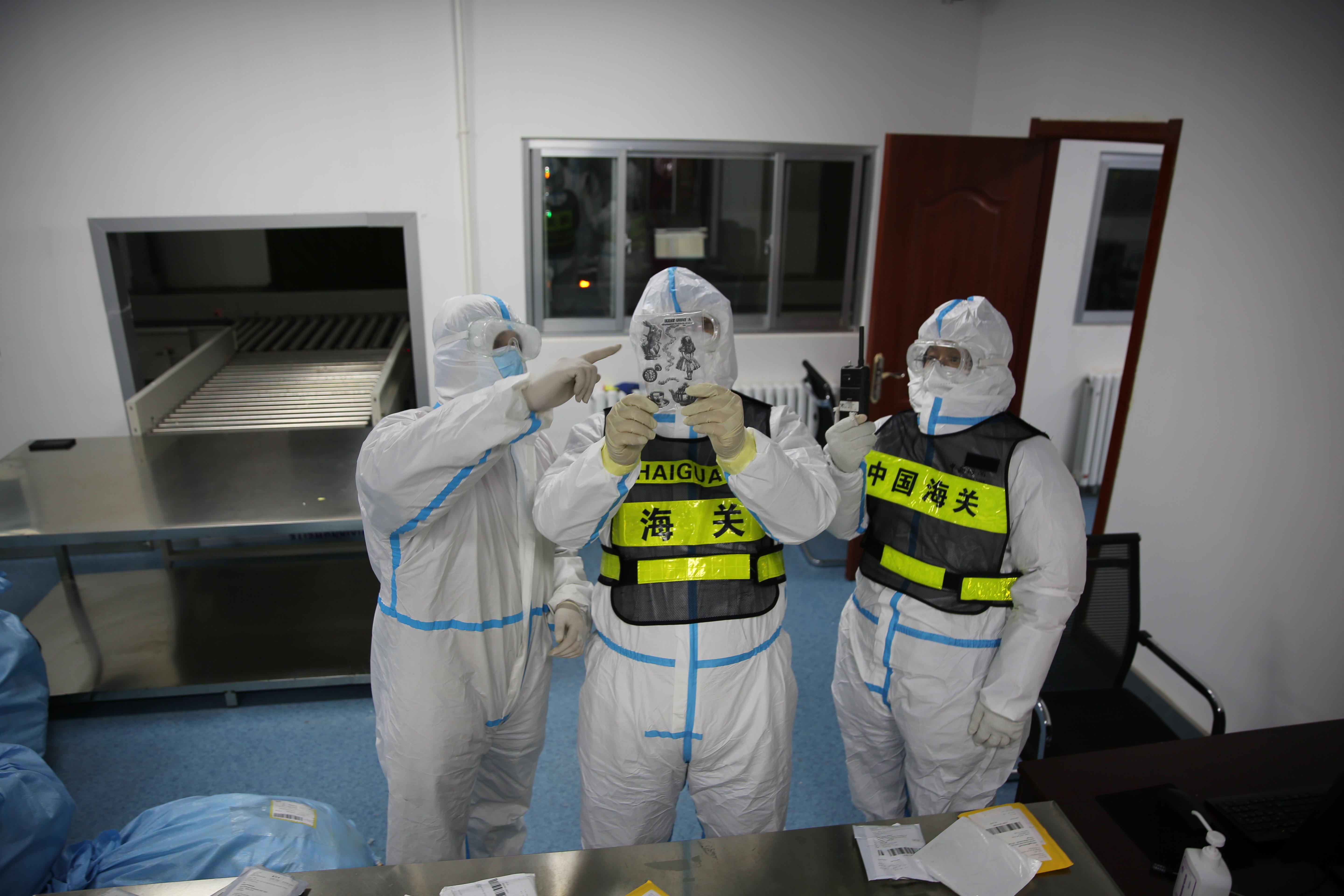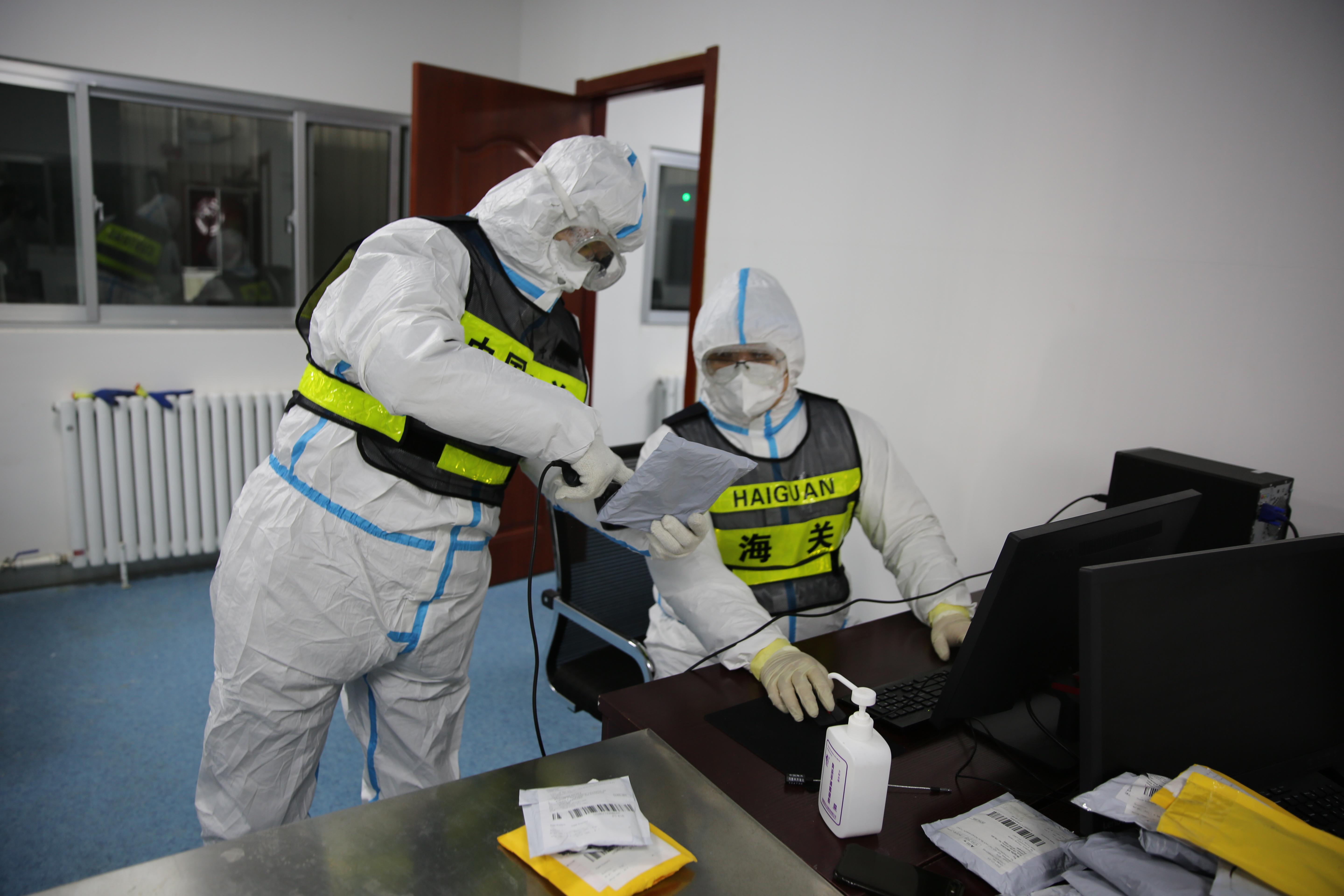 阿拉山口海关工作人员现场查验跨境电商包裹 (图片由阿拉山口海关提供)