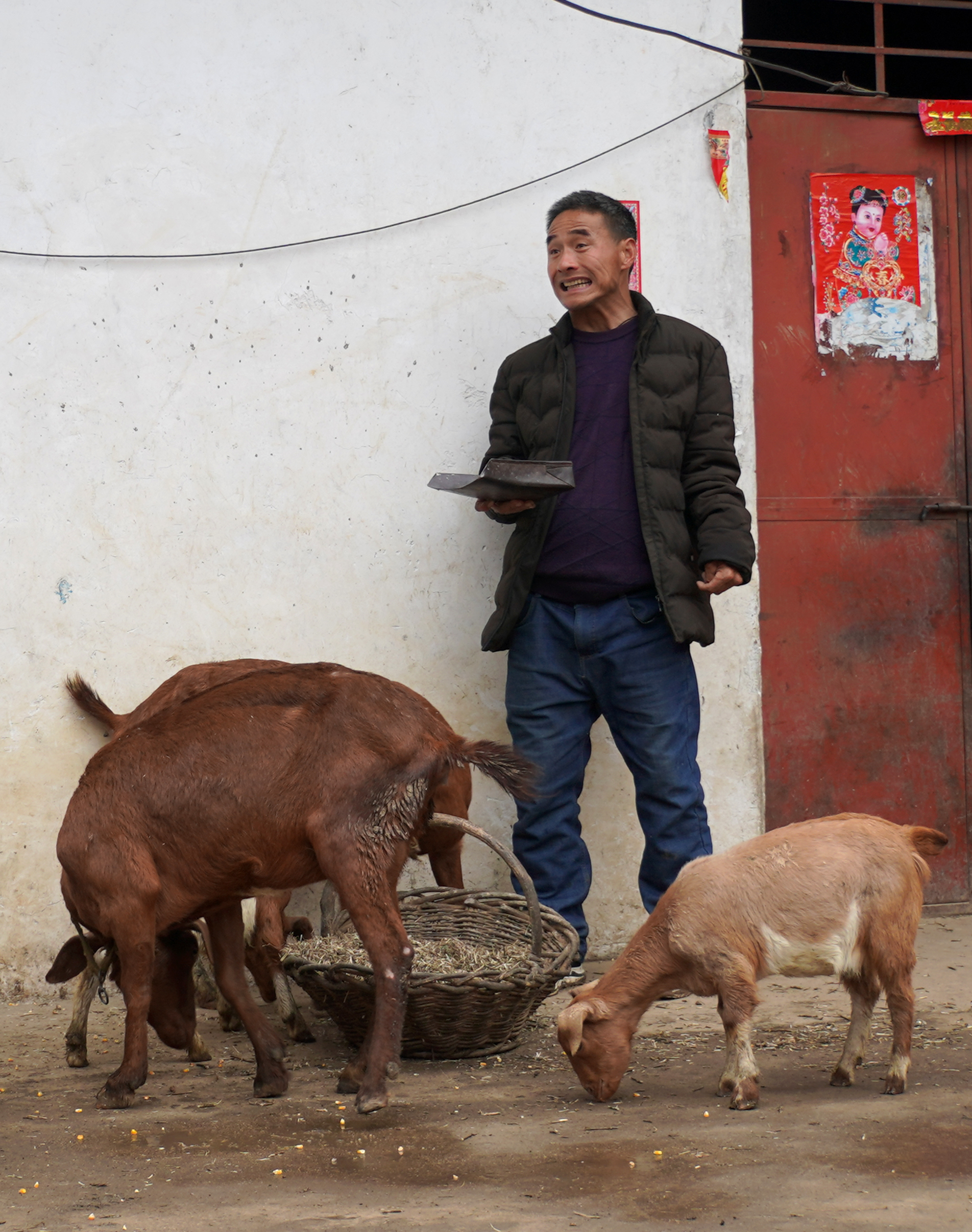 李松山在家中给自己养的羊喂食。新华社记者 袁月明 摄