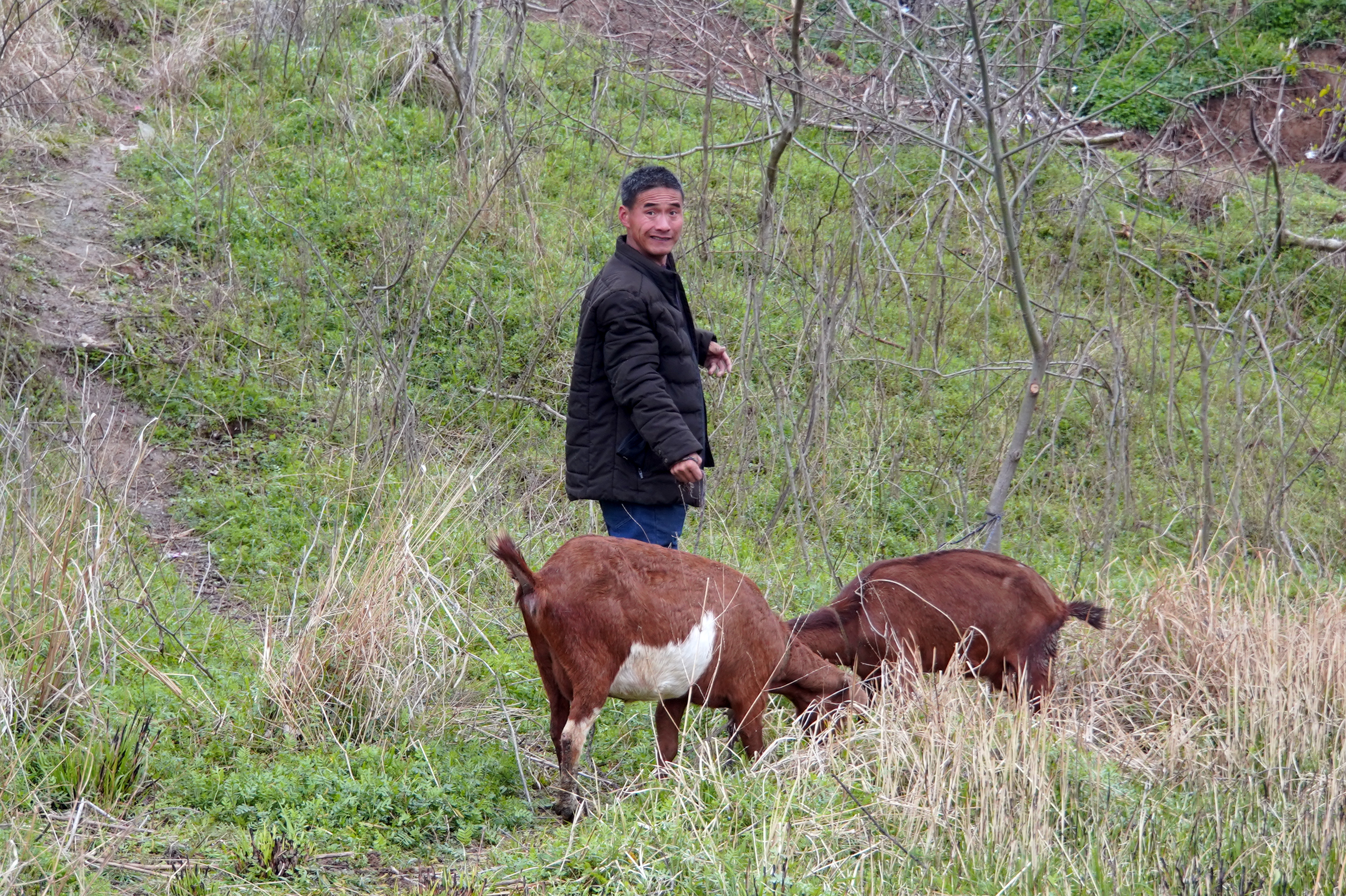 李松山在河南省舞钢市李楼村附近的山冈上放羊。新华社记者 袁月明 摄