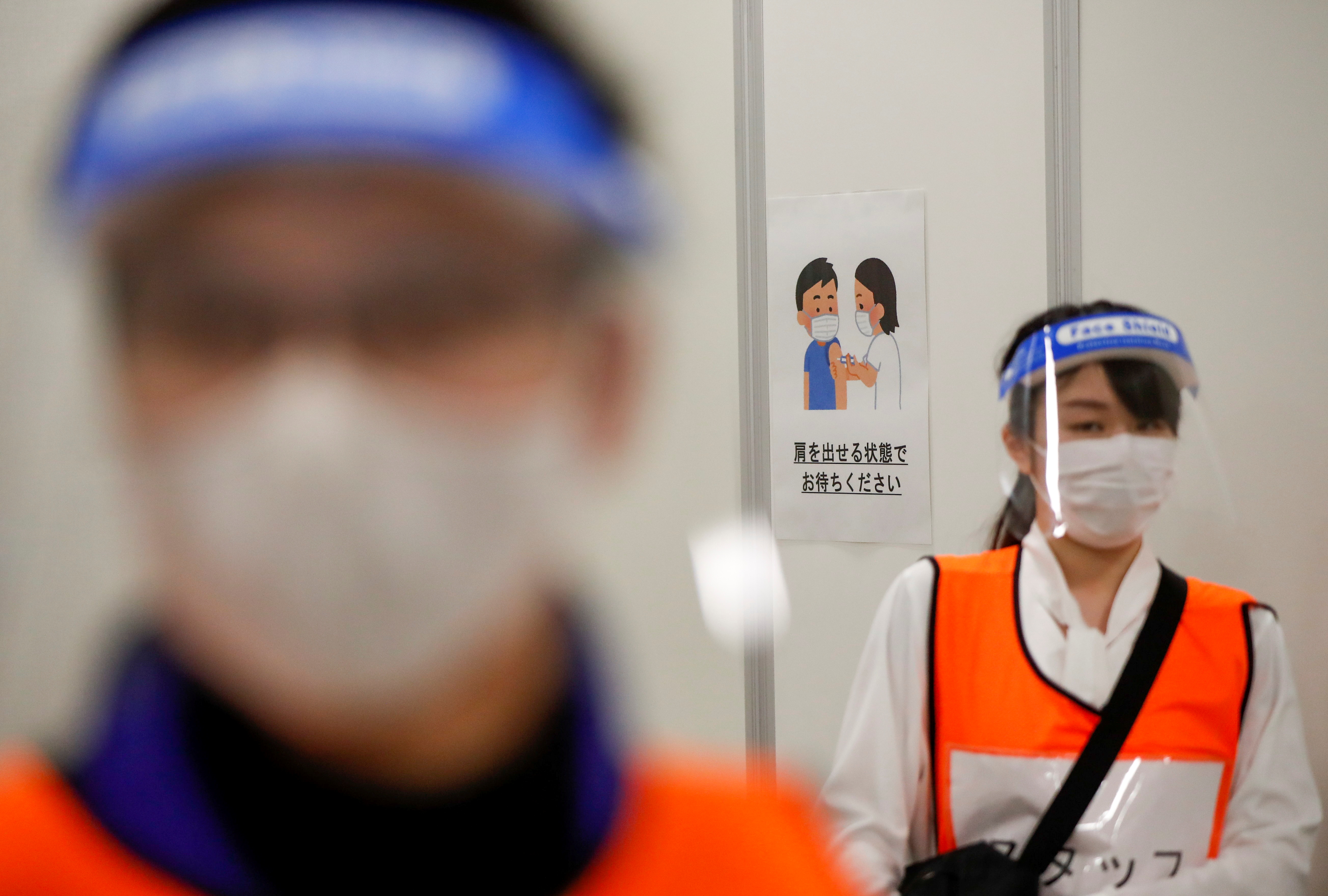 3月5日,医务人员在日本东京一处商场参加疫苗接种演习。新华社/路透