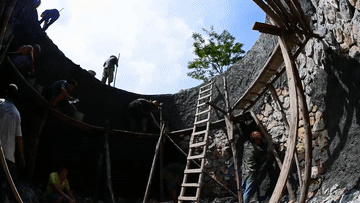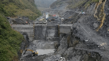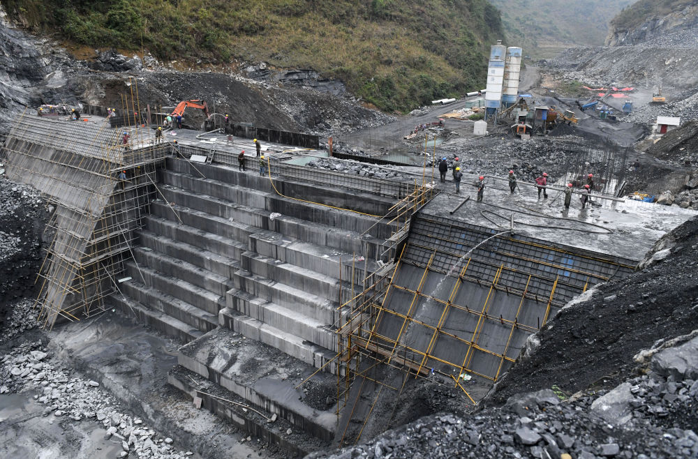 ↑ 广西大化瑶族自治县七百弄乡王烈水库建设现场(2021年3月15日摄)。王烈水库设计年供水量为22.3万立方米,建成后将为周边群众生活用水需求提供保障。