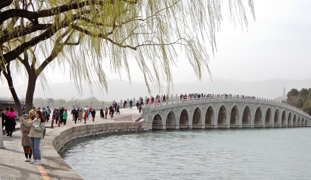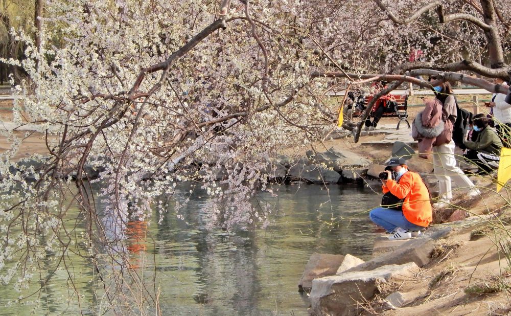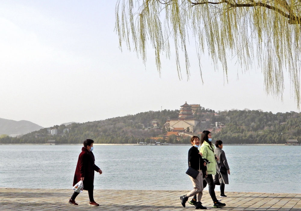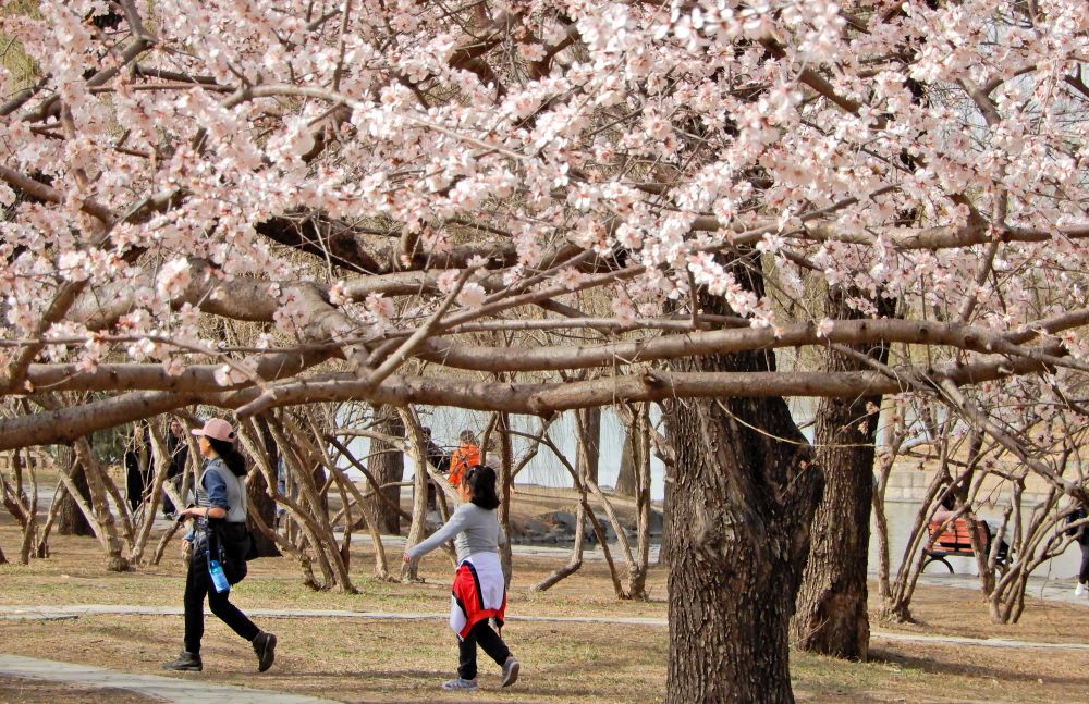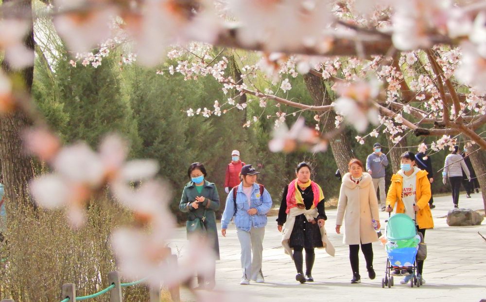 随着气温回升,北京颐和园桃花盛开,柳树吐新,吸引游人前来踏青赏花。