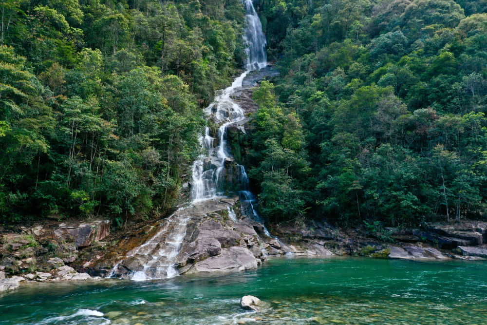 △这是2020年4月1日拍摄的武夷山国家公园内的瀑布清溪。