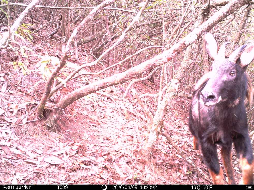 ↑红外相机在武夷山大安源拍摄到的鬣羚。
