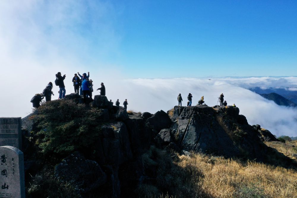 △2020年12月1日,人们在云雾缭绕的武夷主峰黄岗山山顶眺望。