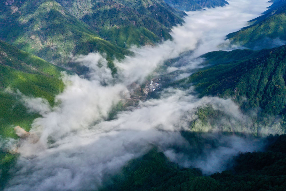 △2020年12月1日,武夷断裂带峡谷内云雾缭绕,村庄若隐若现。