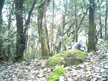 ↑红外相机在武夷山桐木挂墩拍摄到的猪獾。