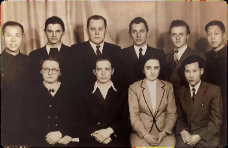 1956年,彭士禄(前排右一)在莫斯科动力学院核动力专业进修深造。
