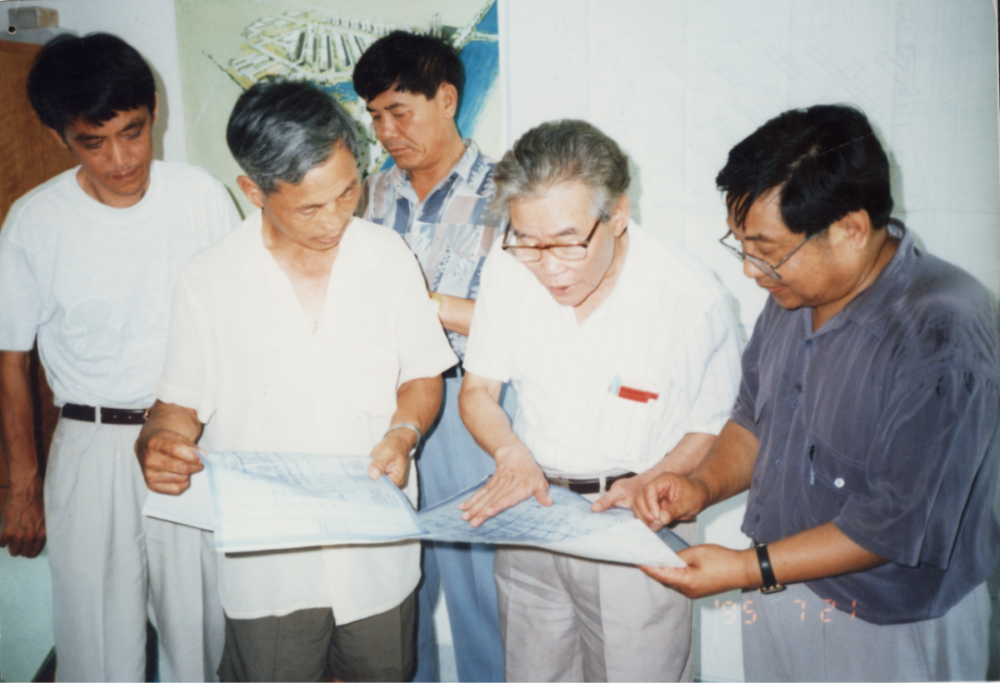 彭士禄与科研人员讨论工作。
