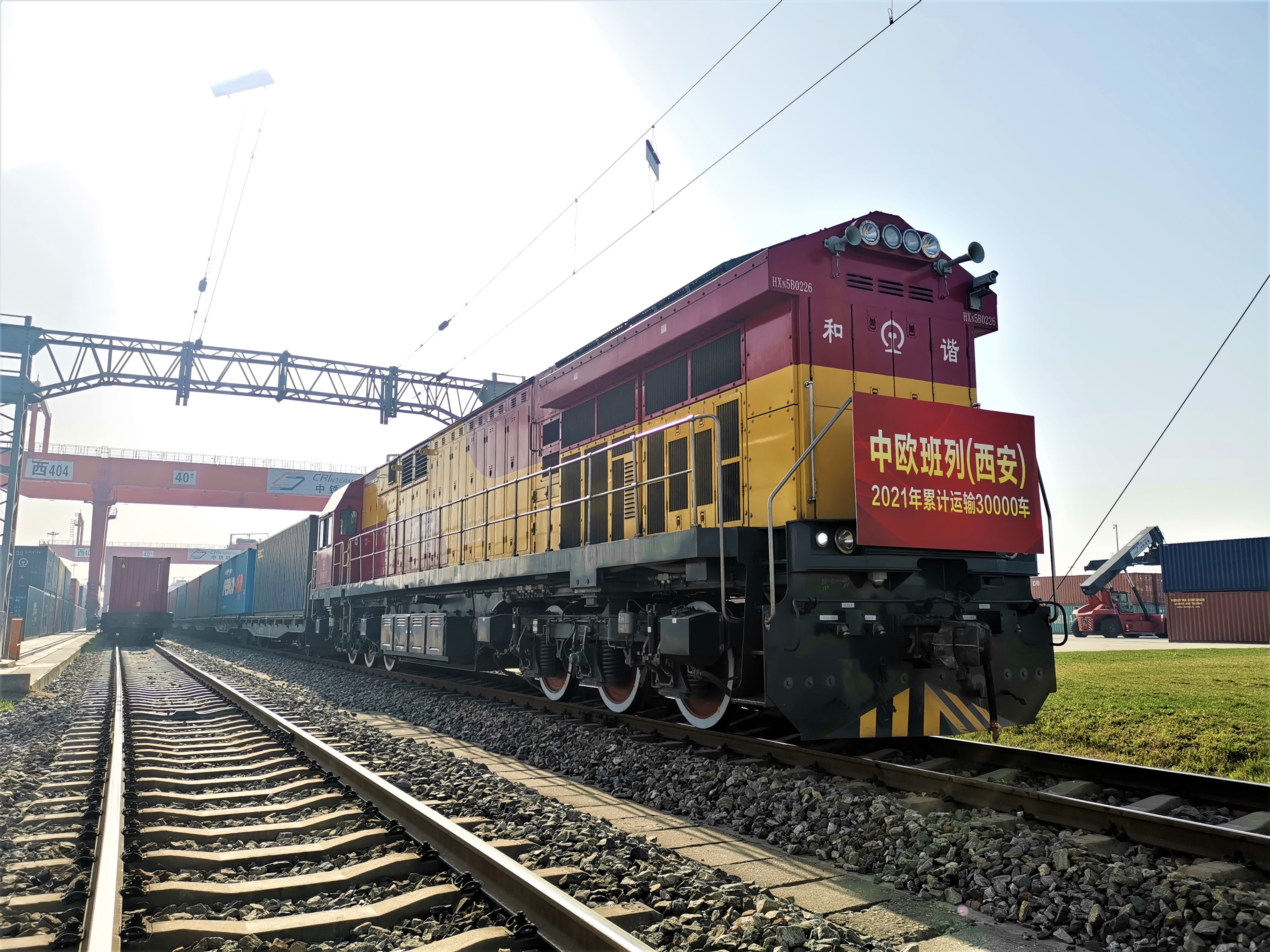 中欧班列(西安)今年以来累计运输车数突破3万车。(照片由西安铁路局提供)