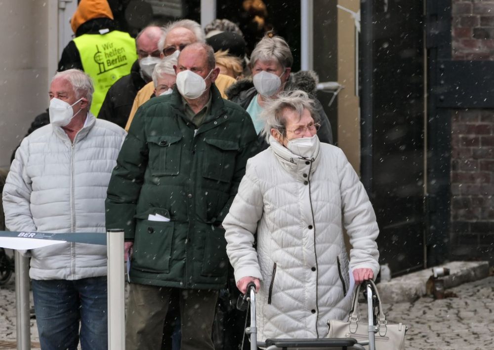 3月19日,人们在德国柏林的一个新冠疫苗接种中心外等候乘坐出租车离开。新华社发
