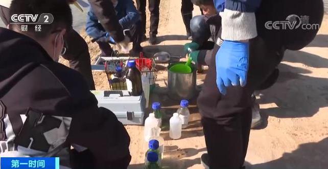 22日下午记者来到达拉特旗王爱召镇黄河大堤,现场已没有死猪的踪迹,先前泡在水里的和岸边的死猪全部被清理掉了,来自水质监测的工作人员正在对水样进行提取。