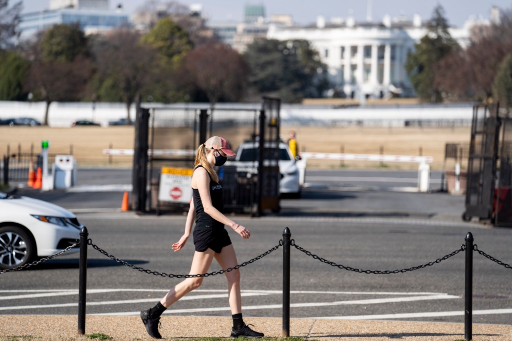 3月11日,一名戴口罩的女子从美国华盛顿的白宫前走过。新华社记者刘杰摄