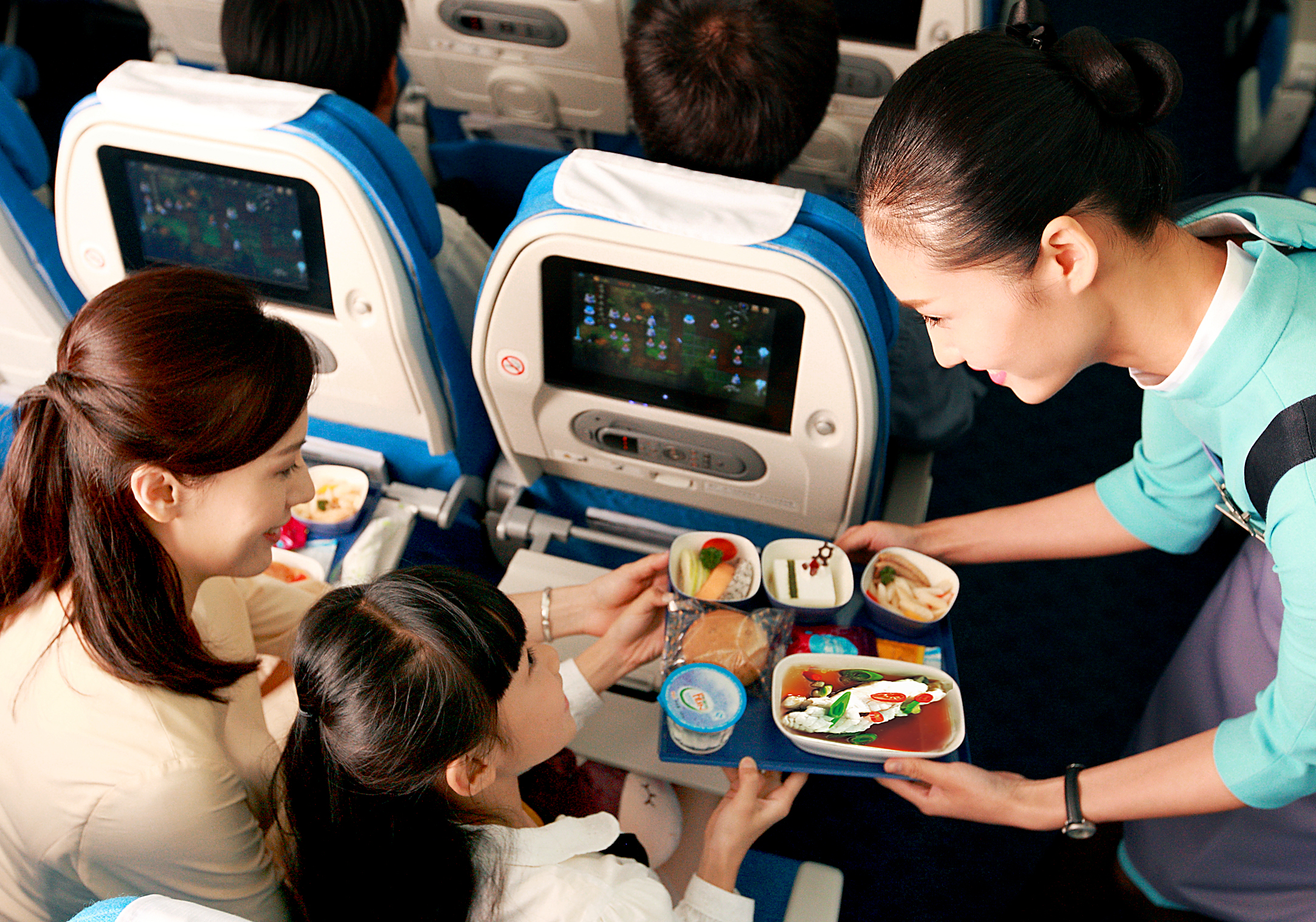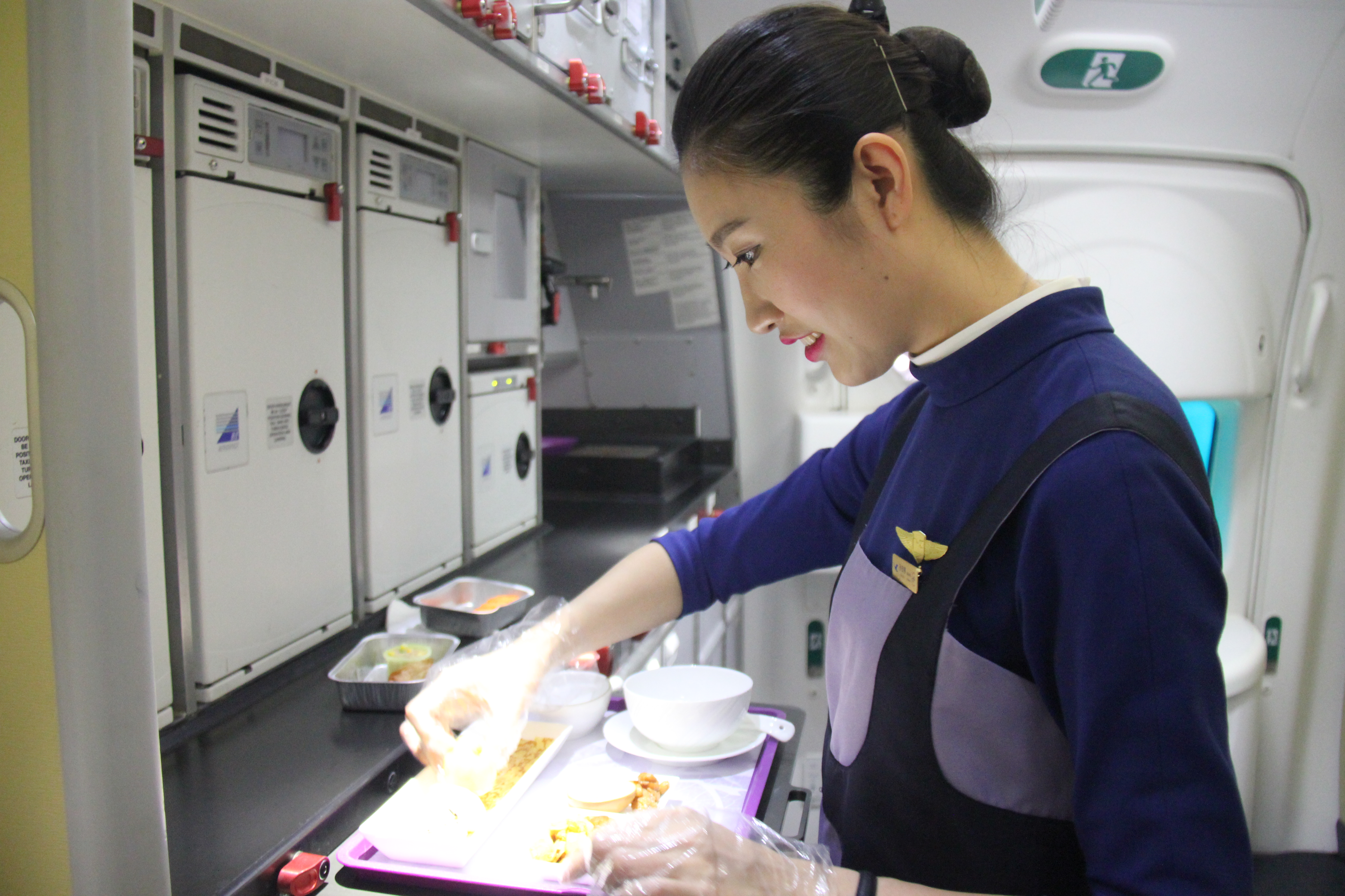乘务员为旅客提供餐食服务(中国航空运输协会供图)