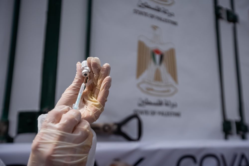 3月21日,医务人员在约旦河西岸城市拉姆安拉准备新冠疫苗。新华社发