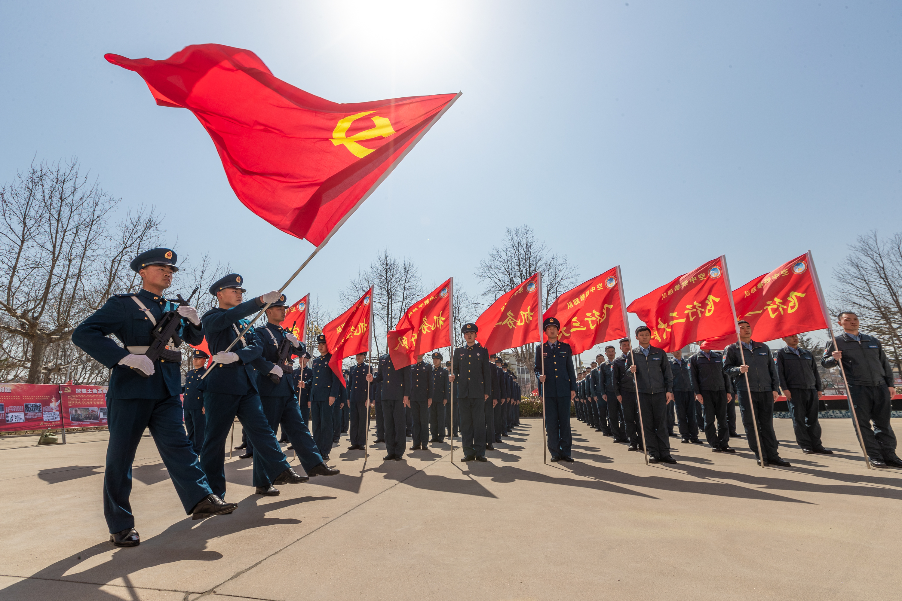 作为北部战区空军党史学习教育的创新方式,“网上党旗传递”活动采取线下组织活动和线上同步展示方法,由南向北沿旅以上单位接力传递党旗,同时配合开展仪式教育、专题党日、理论授课及参观见学等活动,强化党史学习教育落地见效。