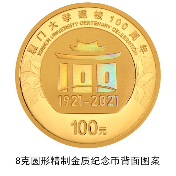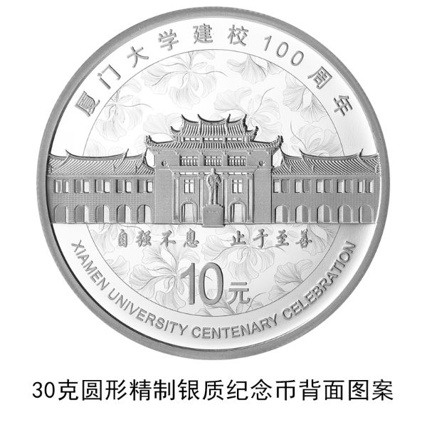 据悉,该套金银纪念币正面图案均为中华人民共和国国徽,并刊国名、年号。8克圆形金质纪念币背面图案为厦门大学100周年校庆标志主要图形,衬以凤凰花纹样等组合设计,并刊“厦门大学建校100周年”中文字样、“XIAMEN UNIVERSITY CENTENARY CELEBRATION”英文字样及面额。30克圆形银质纪念币背面图案为厦门大学群贤楼群造型、陈嘉庚雕像及校训,衬以凤凰花纹样等组合设计,并刊“厦门大学建校100周年”中文字样、“XIAMEN UNIVERSITY CENTENARY CELEBRATION”英文字样及面额。