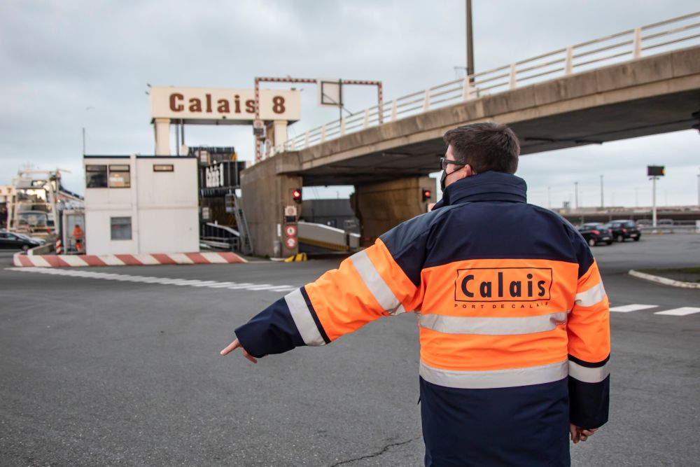 1月1日,工作人员在法国加来港忙碌。加来位于英吉利海峡最窄处,与英国隔海相望。(新华社发,塞巴斯蒂安·库尔吉摄)