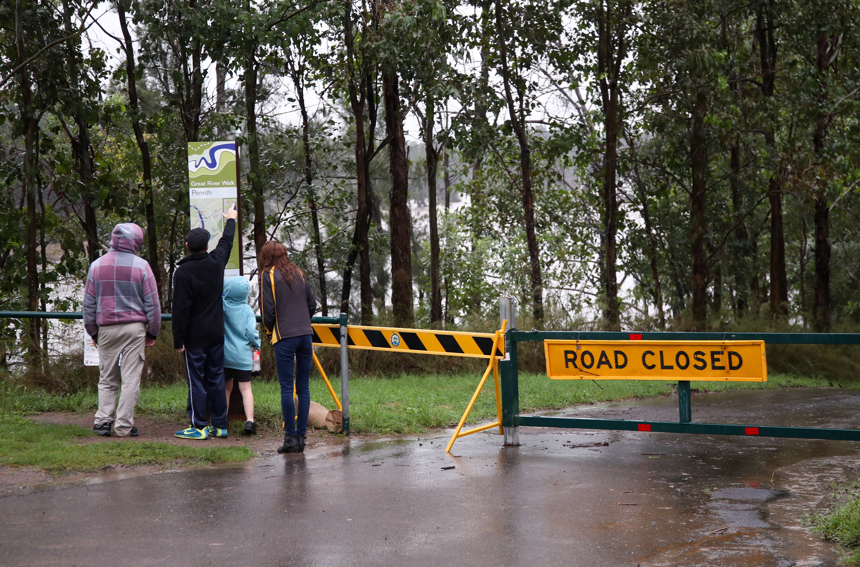 3月22日,当地居民在澳大利亚新南威尔士州一条封闭的道路旁查看信息。(新华社记者 白雪飞 摄)