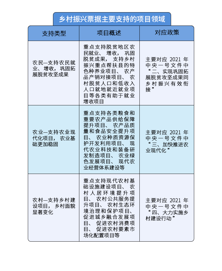 目前,已经有多家企业成功发行了乡村振兴票据,其募集资金主要用于脱贫摘帽地区基础医疗用药,向农户采购玉米、大豆等饲料原材料推动农村种养业发展,归还粮食收储贷款和支持大宗粮源基地“米袋子”工程,利用综合智慧能源助力美丽乡村建设等多个领域。
