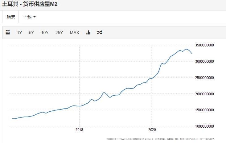 △土耳其货币供应量M2(图片来源:Trading Economics)