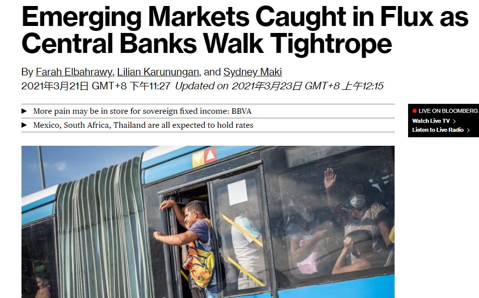 △彭博社《各国央行的加息举措导致新型经济体陷入动荡》,文章称美债收益率的上升引发各国对通胀的担忧,俄罗斯、土耳其、巴西央行加息体现了这一点。