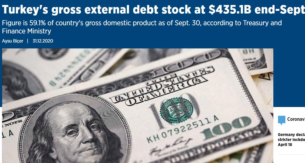 △截至去年9月底,土耳其财政部公布的外债总额达4351亿美元。
