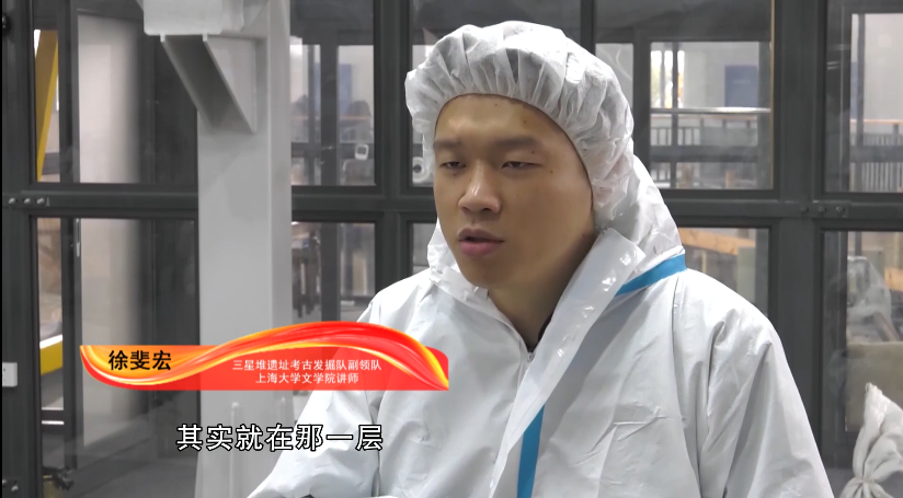 三星堆遗址考古发掘队副领队 徐斐宏:虽然它能维持它的一个形状,它表面那一层有一层薄的壳子,那个壳子其实非常脆,那个壳子大概什么感觉呢?就像雪糕它那层巧克力的那个壳子,其实就在那一层,光泽那一层壳子。那个壳子一不小心就会戳破,然后一戳破的话,可能就一片它那壳子就保不住了。也是对我们清理也是有一定的要求的,也是有一定的难度的.