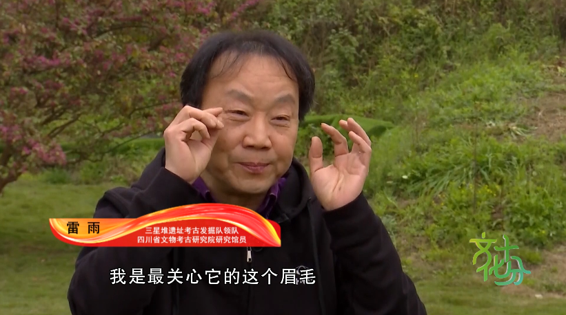 三星堆遗址考古发掘队领队 雷雨:现在五号坑的金面具出来了,我最关心它的这个眉毛,三星堆所有的金面具的眉毛都是镂空的,因为它是贴在铜像上嘛,没必要做眉毛。但是金沙的金面具是有眉毛的,突出来的。我看新出土的那件大面具,真的有眉毛,那完全就是金沙风格。