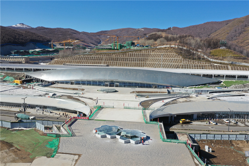太子城高铁站客运枢纽西侧为太子城高铁站,东侧为站前规划1号路,正对太子城冰雪小镇冬奥颁奖广场。该项目总建筑面积为3万平方米,共设地下两层,建设内容包括地下公交首末站、游客集散中心、出租车上落客位、社会车辆停车场、商业配套等。