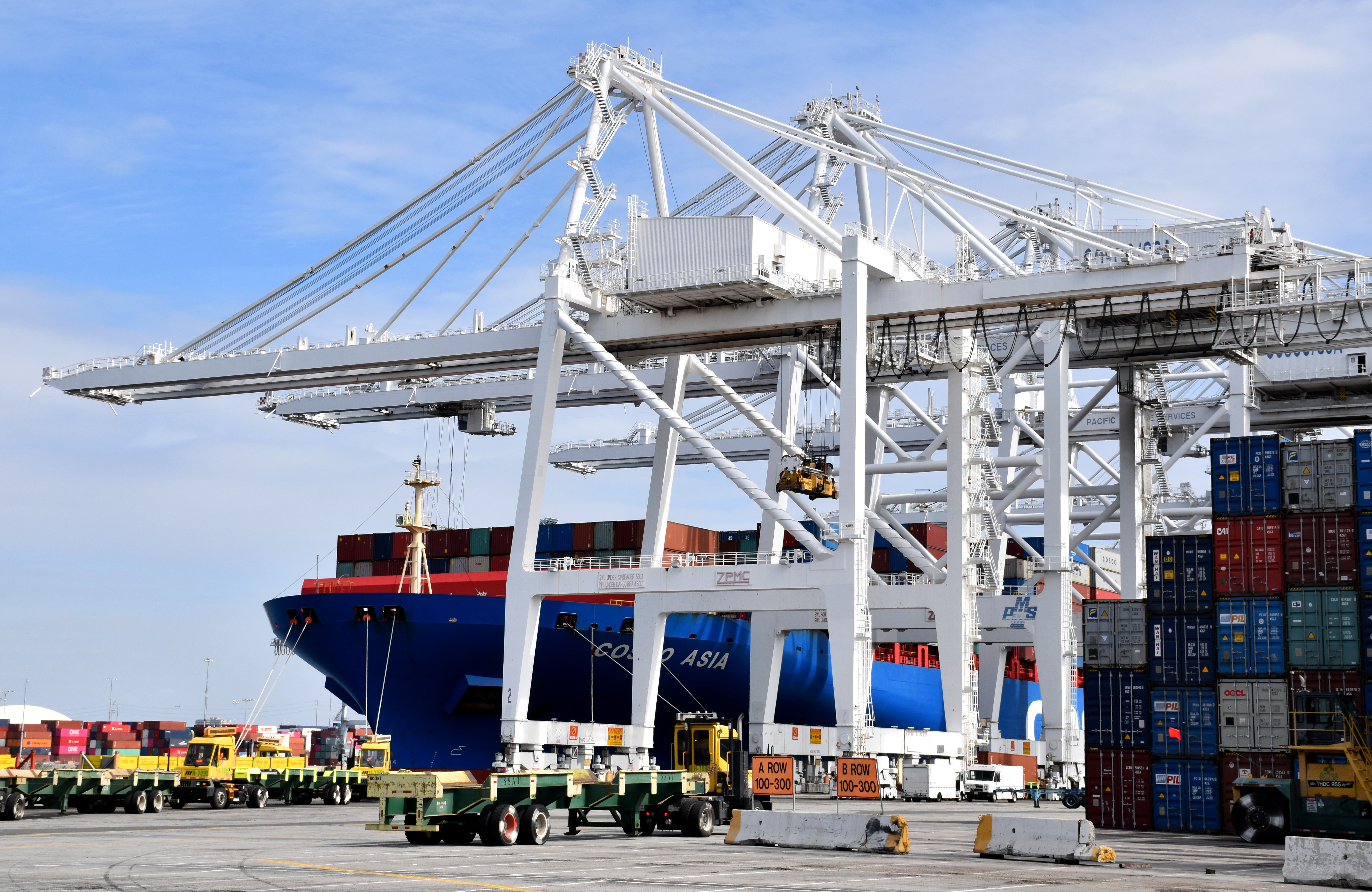 2019年2月27日在美国加利福尼亚州洛杉矶县拍摄的长滩港码头。(新华社记者李颖摄)