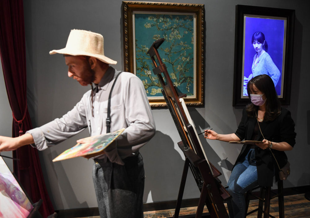“收一收,要闭馆了。”着急的催促声从不远处透过来,周雪蓉立即起身迎了上去。只见,一名保安冲着两位正坐着下象棋的老人喊道,“别下了,我们要下班了!”然而,两位老人却始终无动于衷,似乎完全沉浸在棋艺的世界。一旁的周雪蓉忍俊不禁,连忙解释,“假的假的,这是蜡像!”保安将信将疑,拍了拍老人的肩,又揉了揉眼睛再三确认,才回过神来连连赞叹:不可思议,太像了!