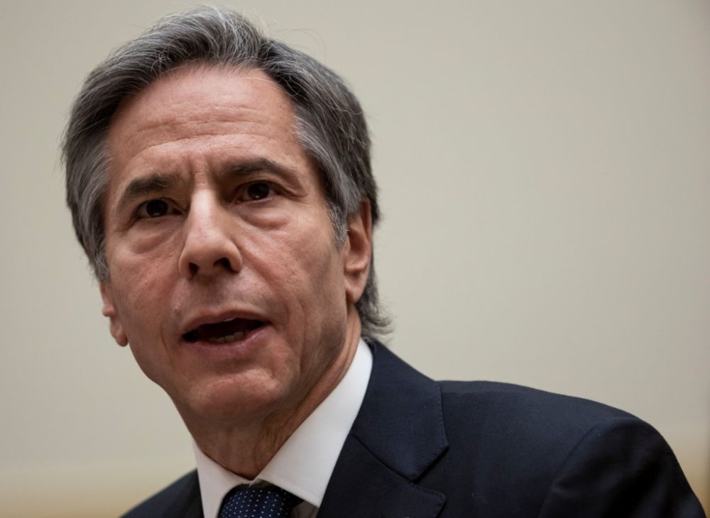 3月10日,在美国首都华盛顿,美国国务卿布林肯在众议院外交委员会听证会上作证。(新华社发,沈霆摄)