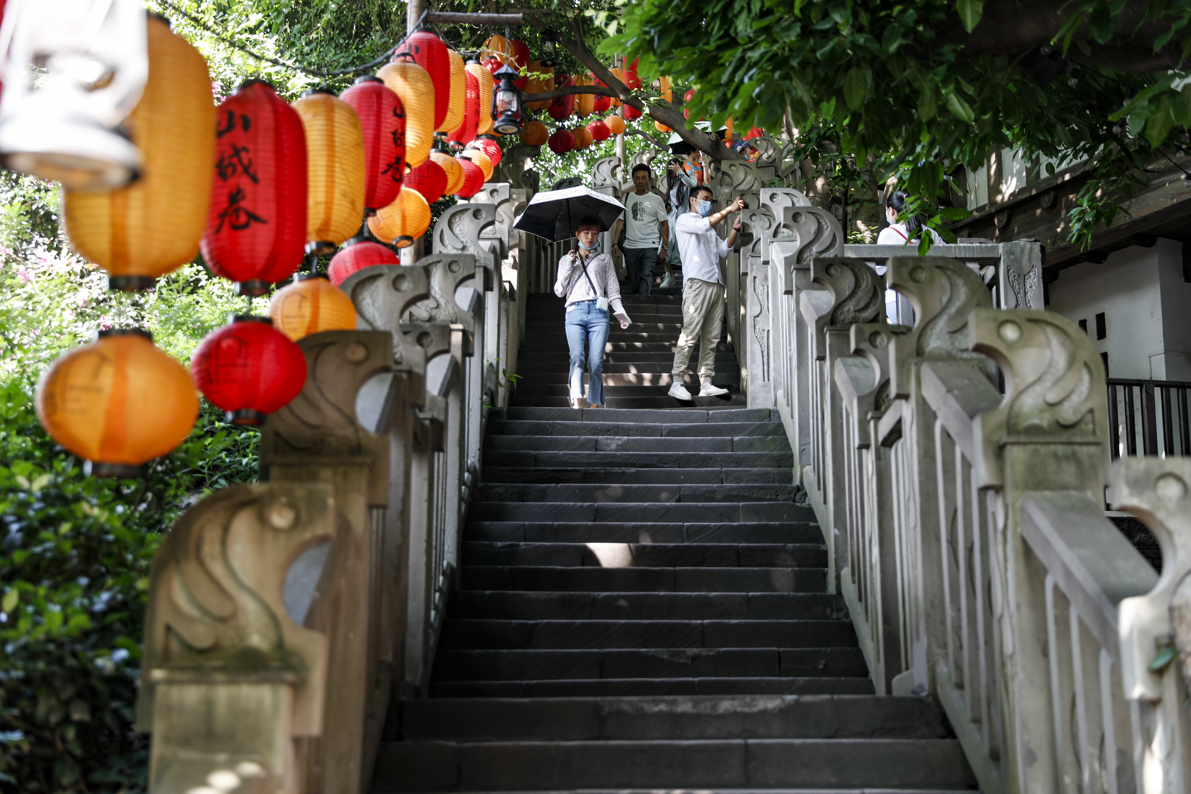 游客在重庆市渝中区山城巷内观赏游玩新华社记者 黄伟摄