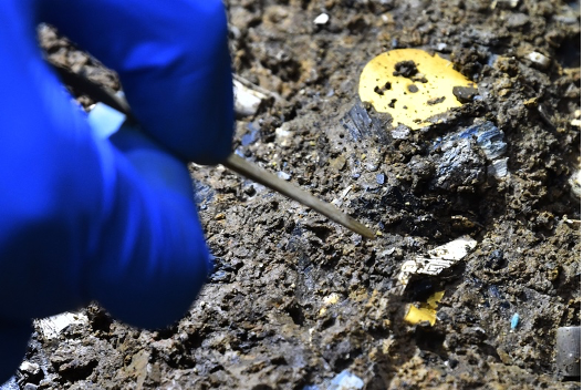 有很多肉眼看不见的遗迹只有在现代科技的辅助下才能得以认知,中国丝绸博物馆的周暘研究员介绍,工作人员在祭祀坑青铜器周边和灰烬里都发现了丝绸的痕迹,这样脆弱的有机质遗迹能保留下来实属难得,同时也可以看到科技手段在考古过程中的重要作用。工作人员们小心翼翼不能放过任何细节,从复杂环境中抽丝剥茧,梳理出有价值的线索,为文物的复原和进一步的研究做好准备。